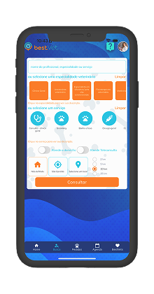 profissional, o tutor escolhe a região que deseja o atendimento do profissional.